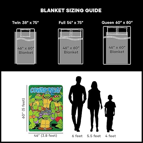 Thông tin sản phẩm Northwest Nickelodeon Fleece Throw Blanket Teenage Mutant Ninja Turtles, Cowabunga Dudes, 46" x 60"