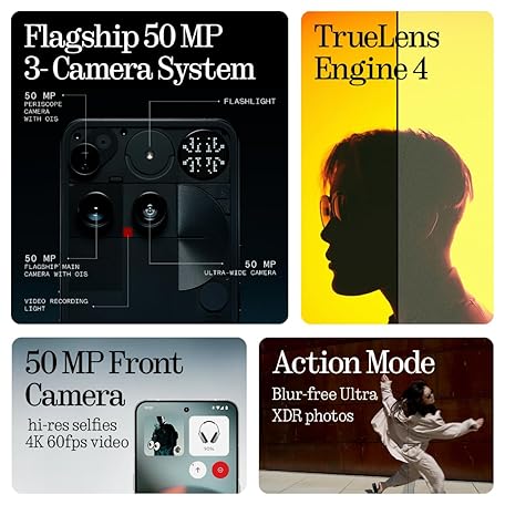 Thông tin sản phẩm Nothing Phone (3) Cell Phone, 2025 New 5G Unlocked Phones 512GB, Android 15, Snapdragon 8s Gen4, AI Mobile Phones with Four 50MP Cameras & AMOLED Display, 5150mAh, Glyph Interface, Smartphone Black