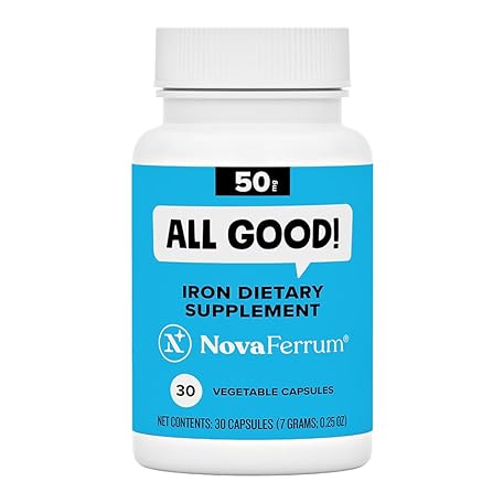 • NovaFerrum All Good | Iron Capsule Supplements for Adults | Anemia | 50mg of Iron | 30 Servings | Sugar Free | Vegan | Gluten Free