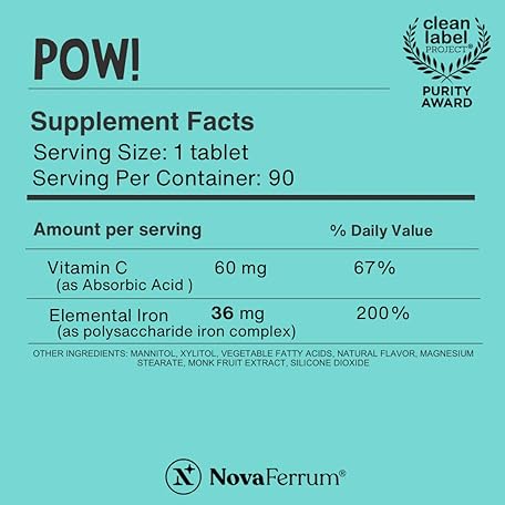 Sản phẩm NovaFerrum Pow | Chewable Iron Supplement for Kids & Adults Ages 12 and Over | Anemia | 36mg of Iron | 90 Servings | Sugar Free | Vegan đang được bán với giá ưu đãi là $23.9255 tại nước Mỹ.