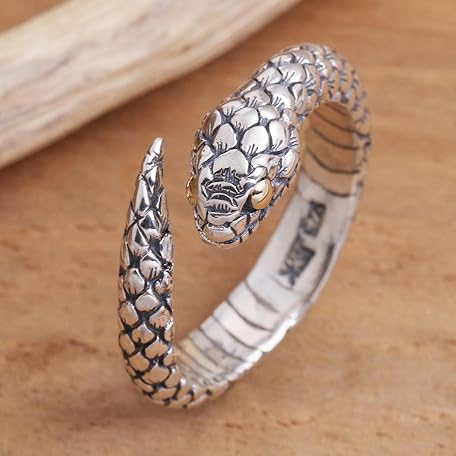 Sản phẩm NOVICA Artisan Handmade Goldaccented .925 Sterling Silver Wrap Ring Realistic Snake Band Indonesia Animal Themed Halloween 'Earth Serpent' đang được bán với giá ưu đãi là $65.3455 tại nước Mỹ.