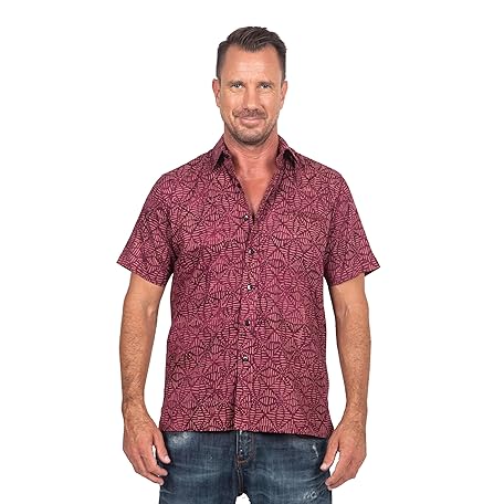 NOVICA Artisan Handmade Men's Batik Cotton Short Sleeve Button Down Shirt from Indonesia, 'Indonesian Intricacy'