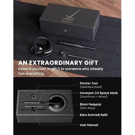 Thông tin sản phẩm novium Hoverpen Interstellar - Space Black, Ballpoint Pen, Unique Conversational Starter, Premium Futuristic Design, Precision Flow Ink, Schmidt Ballpoint Cartridges