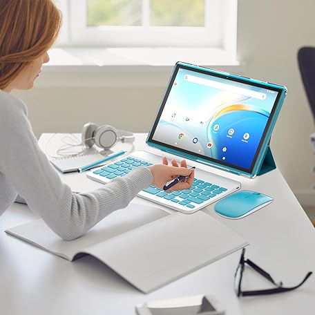 Thông tin sản phẩm NOVOJOY 2 in 1 Tablet 10 Inch Android 14 OS Tableta, Tablets with Keyboard, Mouse, Case, Stylus, 64GB ROM+8GB RAM, 2MP+8MP Dual Camera, Quad Core Processor, 6000mAh Battery, 10.1 in FHD Tab Navy.