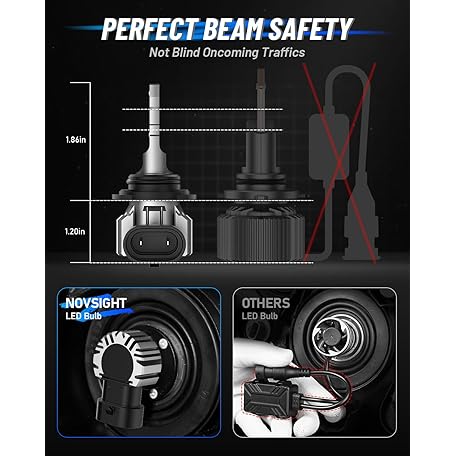 • NOVSIGHT 9005 9006 LED Light Bulbs Combo - 40000LM Brighter 6500K Cool White, 1:1 Design Plug and Play, 9005/HB3 High Beam 9006/HB4 Low Beam Automotive Fog Light Kit