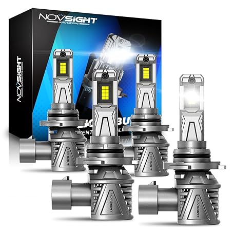 • NOVSIGHT Upgraded 9005 9006 LED Headlight Bulbs Combo 35000 Lumens, 600% Brightness 9006/HB4 Low Beam 9005/HB3 High Beam, 120W 6500K Cool White, Pack of 4