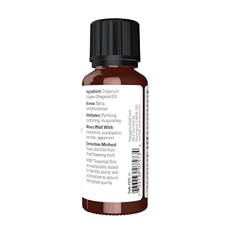 Thông tin sản phẩm NOW Essential Oils, Oregano Oil, Comforting Aromatherapy Scent, Steam Distilled, 100% Pure, Vegan, Child Resistant Cap, 1-Ounce