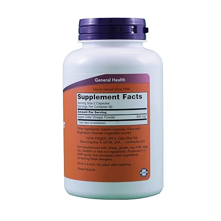 NOW Foods Apple Cider Vinegar 450mg, 180 Count, Pack of 2