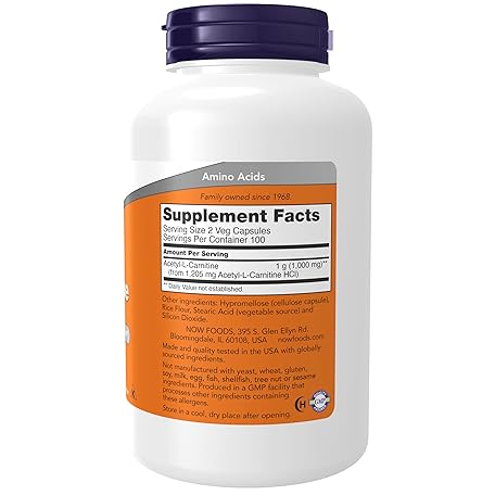 Thông tin sản phẩm NOW Foods Supplements, Acetyl-L Carnitine 500 mg, Amino Acid, Brain And Nerve Cell Function*, 200 Veg Capsules