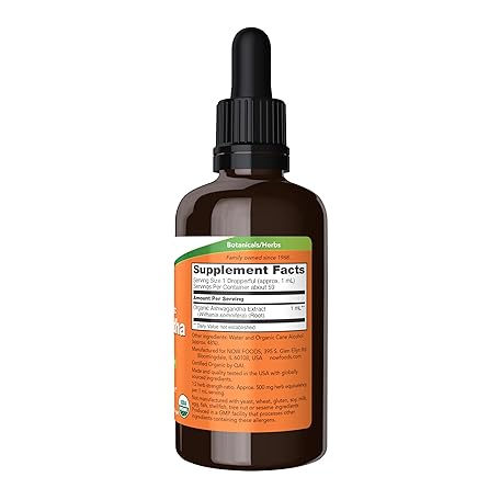 Thông tin sản phẩm NOW Foods Supplements, Ashwagandha Liquid Extract, Organic, Immune System Support, 2 fluid ounces