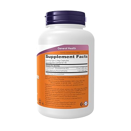 Thông tin sản phẩm NOW Foods Supplements, Glucosamine & MSM (GreenGrown® Glucosamine), Vegetarian, 120 Veg Capsules