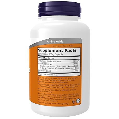 Thông tin sản phẩm Now Foods Supplements, Glutathione 500 mg, with Milk Thistle Extract & Alpha Lipoic Acid, Free Radical Neutralizer*, 120 Veg Capsules, Beige