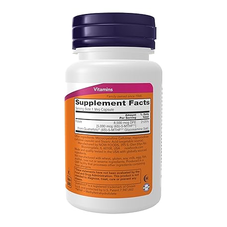 Thông tin sản phẩm NOW Foods Supplements, Methyl Folate 5000 mcg, Superior Bioavailability, 50 Veg Capsules