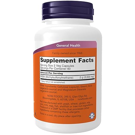 Thông tin sản phẩm NOW Foods Supplements, MSM (Methylsulfonylmethane) 1,000 mg, Joint Health*, 120 Veg Capsules