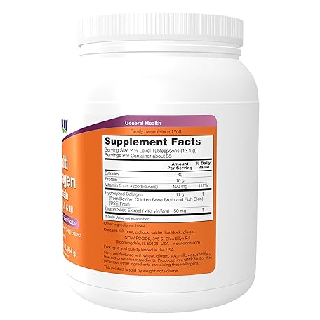 Thông tin sản phẩm NOW Foods Supplements, Multi Collagen Protein Types I, II & III Powder, Bone, Joint, and Skin Health, 16 oz (454 g)
