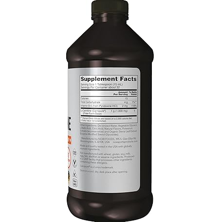 Thông tin sản phẩm NOW Sports Nutrition, L-Carnitine Liquid 1,000 mg, Highly Absorbable, Tropical Punch, 16-Ounce