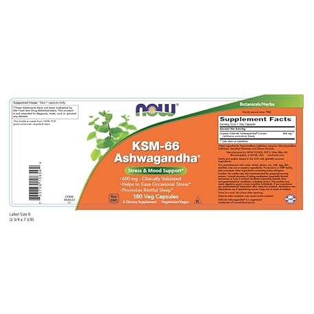 Thông tin sản phẩm Now Supplements, KSM-66 Ashwagandha®, Stress and Sleep Support, 180 Veg Capsules