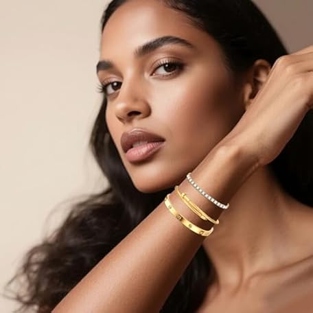 Thương hiệu Ntutrxk là cái tên nổi tiếng được rất nhiều khách hàng trên thế giới chọn lựa. Với kiểu dáng đẹp mắt, sang trọng, sản phẩm Ntutrxk Gold Bracelets for Women-4Pcs/3Pcs,18K Gold Plated Bangle Tennis Bracelets Stack Set for Women Trendy Non Tarnish Stainless Steel Gold Bangles Accessories Designer Jewelry là sự lựa chọn hoàn hảo nếu bạn đang tìm mua một món cho riêng mình.