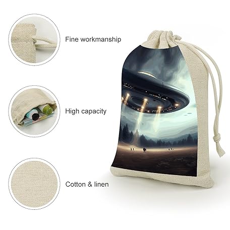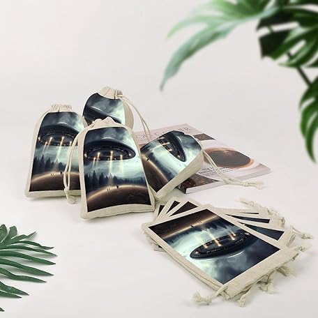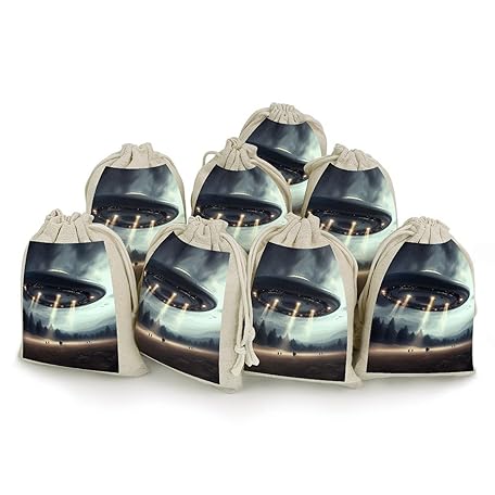 Thông tin sản phẩm NTVOWPZO 8PCS UFO Landing Cotton Drawstring Bag 5x7 Inch Small Cloth Gift Bags with Drawstring, Reusable Muslin Bags Pouches, Empty Candy Bag for Wedding Party Birthday Favors