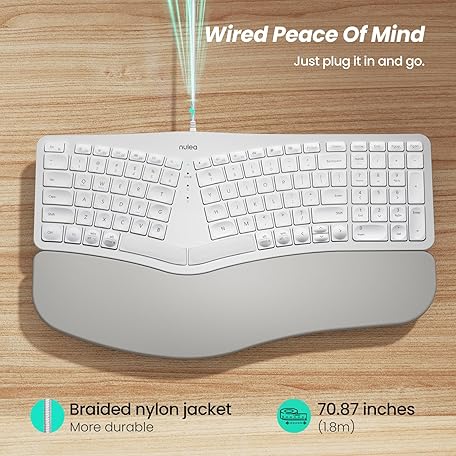 Nulea RT05C Wired Ergonomic Keyboard, Split Keyboard with Cushioned Wrist Rest, Adjustable Tilt Legs, Plug and Play, USB Corded, Compatible with Windows/Mac-White
