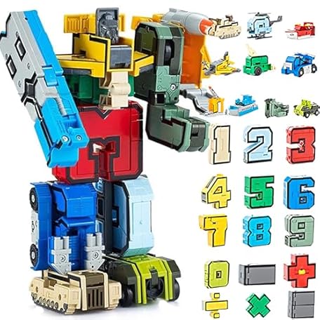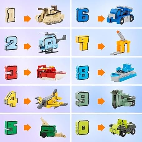 Number Transforming Toys 15 Pieces Number Robot, Number-Blocks for Learning & Play Transform Into Car Vehicle/Airplane/Boat/ STEM Educational Toys Christmas Birthday Gift for Boys Girls 3-10 Years Old