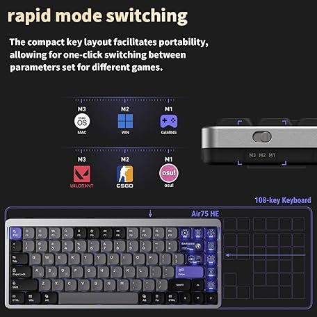 Thông tin sản phẩm nuphy Air75 HE Rapid Trigger Wired Custom Magnetic Gaming Keyboard,RGB HotSwap, 84 Keys 75% Layout Adjustable Actuation Esports Low Profile Keyboard, Hall Effect Keyboard(Magnetic Jade Pro Switch)