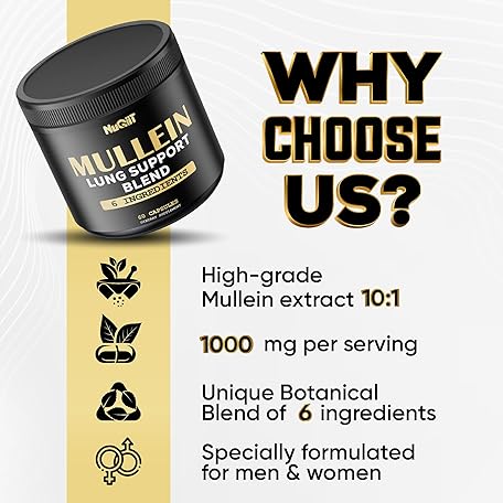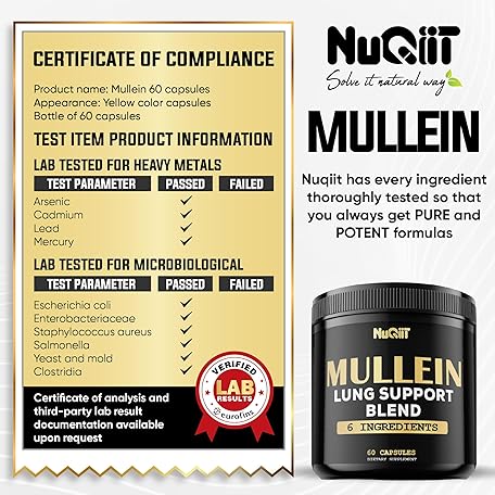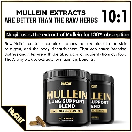 Thông tin sản phẩm NUQIIT Mullein Leaf Capsules with Cordyceps Sinensis, Bromelain, and More - Support Respiratory Health, Immune System & Body Balance - 60 Vegan Capsules