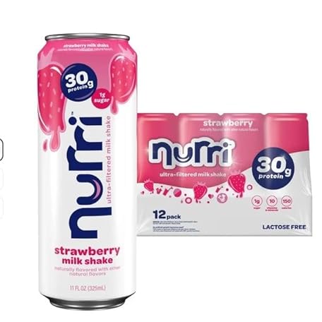 Nurri - 30g Protein Ultra Filtered Milk Shake – Strawberry - Lactose Free, Low Sugar, 150 Calories, 10 Vitamins and Minerals - 11 fl oz, 12 Cans