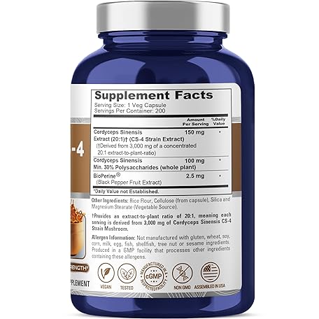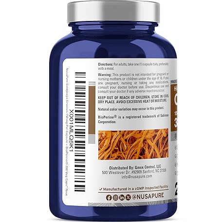 Thông tin sản phẩm NusaPure Cordyceps 20:1 Extract, 150 mg Equivalent to 3,000mg 200 Veggie Capsules (Sinensis CS-4, Non-GMO, Vegan) Bioperine