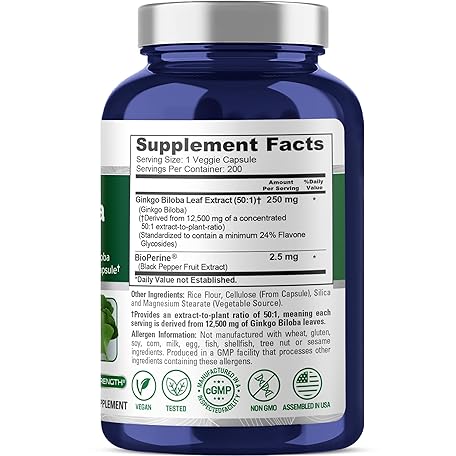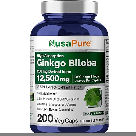 Thông tin sản phẩm NusaPure Ginkgo Biloba 50:1 Extract, 250 mg Equivalent to 12,500 mg per Veggie Caps 200 Capsules (Vegetarian, Non-GMO, Vegan) Bioperine