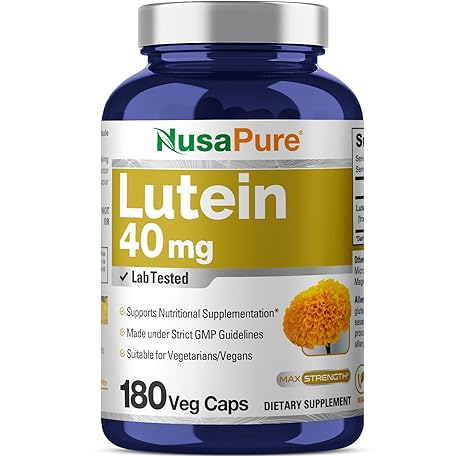 • NusasPure Lutein 40mg 180 Veggie Capsules (Non-GMO, Vegan)