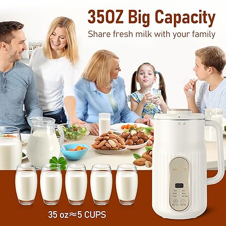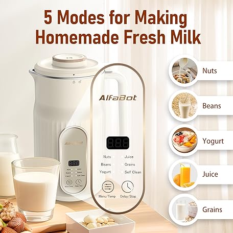 Thông tin sản phẩm Nut Milk Maker, AlfaBot N2 Automatic Almond Milk Machine for Homemade Plant-Based Milk, Oat, Soy, Yogurt, 5 Modes/35OZ Big Capacity Soy Milk Maker with Delay Setting and Self Cleaning (White)
