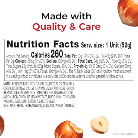 Thông tin sản phẩm Nutella & GO! Chocolate Hazelnut Spread with Cocoa + Breadsticks, 12 Snack Packs, 1.8 oz Each