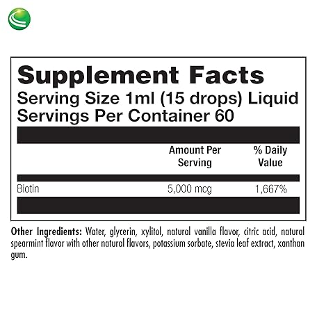 Thông tin sản phẩm Nutra BioGenesis Biotin 5000 - Liquid Biotin Drops for Hair Skin and Nails, Pure Supplement for Women and Men, 5000mcg Per Serving - 2 Fl Oz (59 mL) Glass Bottle