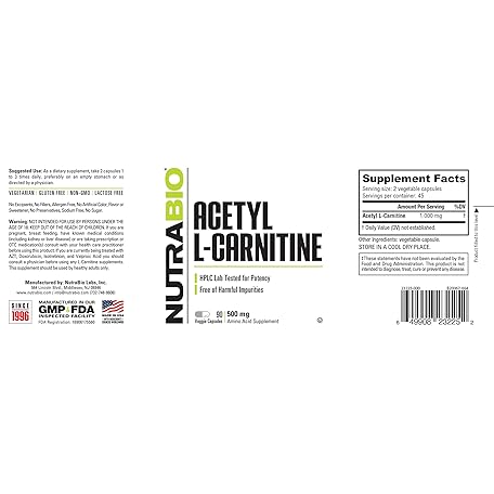Thông tin sản phẩm NutraBio Acetyl L-Carnitine (ALCAR) Supplement, 500mg - Support Natural Energy Production, Metabolic Management, and Overall Health, 90 Capsules