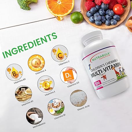 • NutraBulk Children’s Chewable Multi-Vitamins - Promoting Kids' Overall Development - USA-Made, May Help to Support Immune, Bone, Brain & Overall Well Being- Vegan & Gluten Free - 500 Cherry Tablets