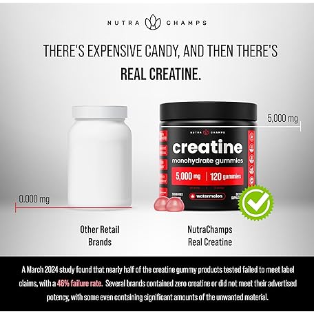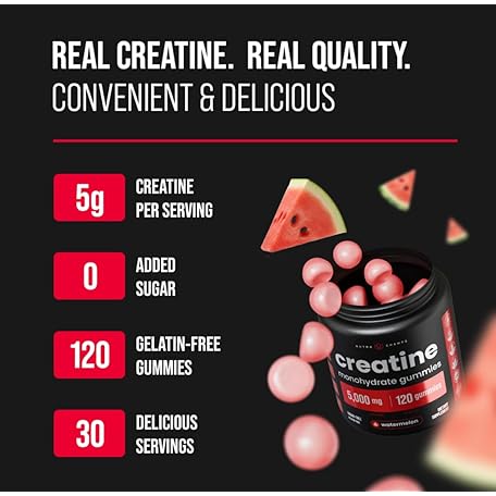 Thương hiệu NutraChamps là cái tên nổi tiếng được rất nhiều khách hàng trên thế giới chọn lựa. Với kiểu dáng đẹp mắt, sang trọng, sản phẩm NutraChamps 120 Creatine Gummies for Men & Women - 5g Sugar Free Chewable Creatine Monohydrate Gummies - Supports Protein Synthesis, Muscle Recovery & Workout Performance là sự lựa chọn hoàn hảo nếu bạn đang tìm mua một món cho riêng mình.