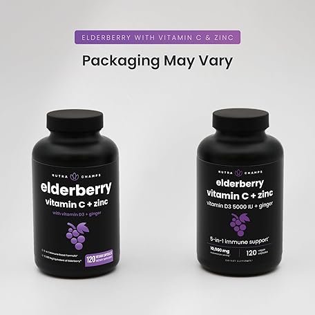 Thông tin sản phẩm NutraChamps Elderberry with Vitamin C and Zinc - 5 in 1 Immunity Supplement, 10,000mg Sambucus Black Elderberry Capsules with Vitamin D3 5000 IU, Sambucus Elderberry Extract Immune Support for Adults