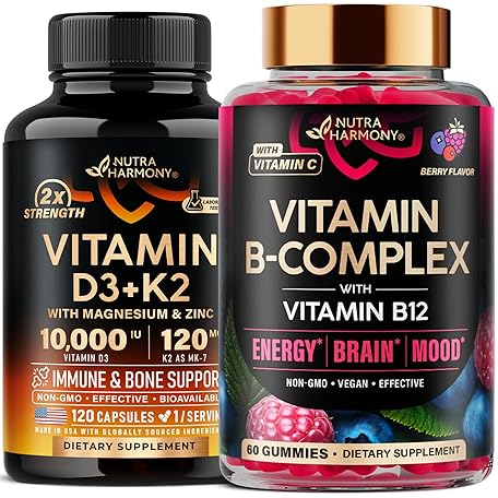 Sản phẩm NUTRAHARMONY Vitamin D3 K2 Capsules & Vitamin B-Complex Gummies đang được bán với giá ưu đãi là $33.354 tại nước Mỹ.
