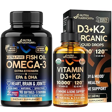 Sản phẩm NUTRAHARMONY Vitamin D3 K2 Drops & Omega 3 Fish Oil Softgels đang được bán với giá ưu đãi là $38.695 tại nước Mỹ.