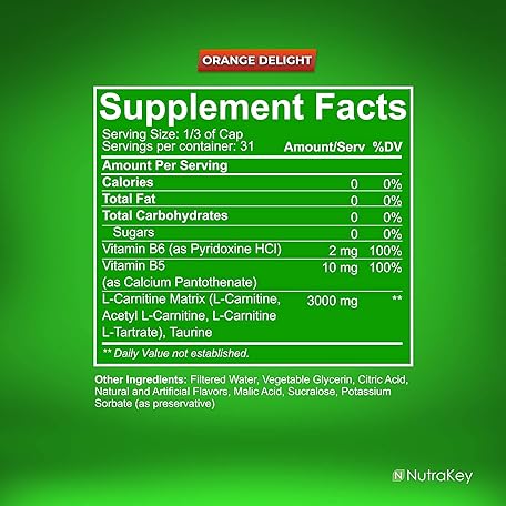 Thông tin sản phẩm NutraKey L-Carnitine 3000mg, No Sugar, Gluten Free, Turn Into Fuel, (Orange Delight) 31 Servings