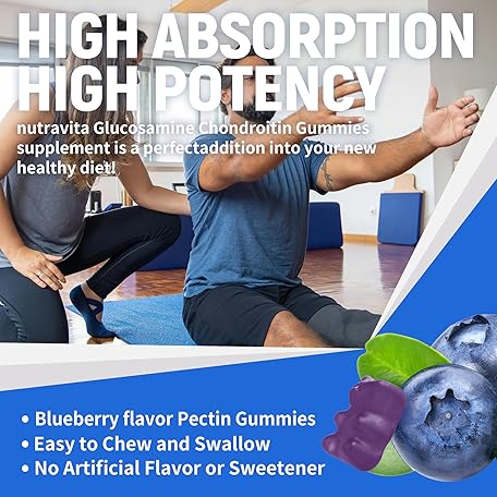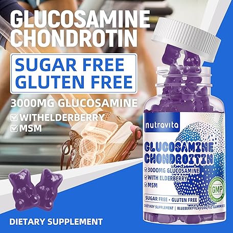 Nutravita Glucosamine Chondroitin Gummies with MSM & Elderberry Extra Strength - Joint Support, Antioxidant Immune Support Supplement for Adults, Men & Women.60 Blueberry Chews