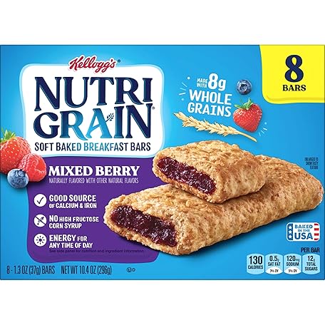 Thông tin sản phẩm Nutri Grain Kellogg's, Soft Baked Breakfast Bars, Mixed Berry, 10.4oz , 8 Count (Pack of 6)