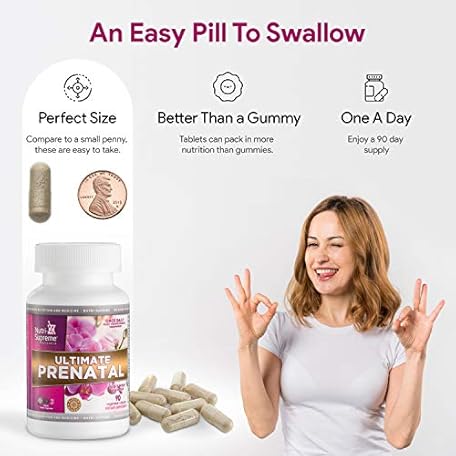 Thông tin sản phẩm Nutri Supreme Ultimate Prenatal Vitamins, 90 Veggie Capsules. 1,000 mcg Folate, One Per Day Pregnancy Multivitamin with over 20 Essential Vitamins, Mom and Baby Health, Kosher 90 Day Supply
