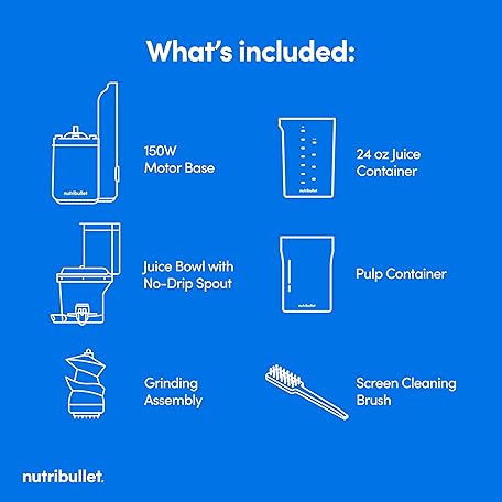 Thông tin sản phẩm nutribullet Slow Juicer, Slow Masticating Juicer Machine, Easy to Clean, Quiet Motor & Reverse Function, BPA-Free, Cold Press Juicer with Brush, 150 Watts, Charcoal Black, NBJ50300, 24-oz