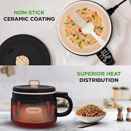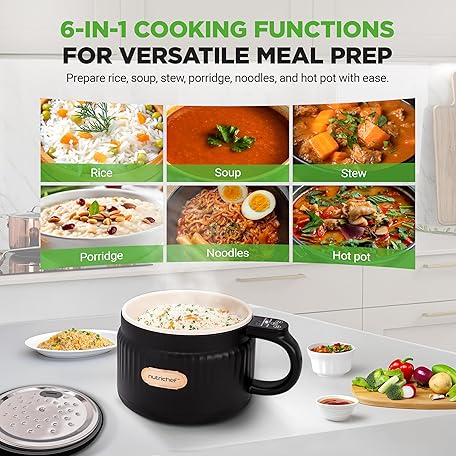 Thông tin sản phẩm NutriChef 1.6 QT Portable Electric Rice Cooker & Lunch Maker | Multi-Functional & Non-Stick Ceramic Coating | Digital Control Panel | 6 Cook Functions: Rice, Soup, Stew, Porridge & More | Black