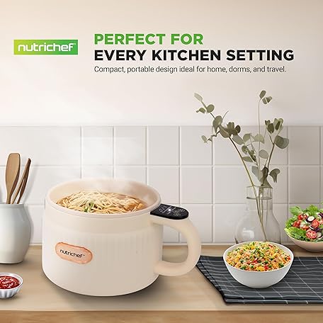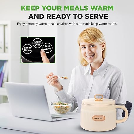 Thông tin sản phẩm NutriChef 1.6 QT Portable Electric Rice Cooker & Lunch Maker | Multi-Functional & Non-Stick Ceramic Coating | Digital Control Panel | 6 Cook Functions: Rice, Soup, Stew, Porridge & More | White