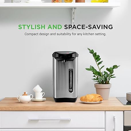 Thông tin sản phẩm NutriChef Hot Water Urn Pot Insulated Stainless Steel,Auto & Manual Dispense,Auto Boiler,Safety Lock Shutoff 3.38 QT /3.2L - Auto Boiler Shut Off - PKWK43
