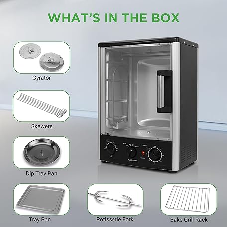 Thông tin sản phẩm NutriChef Vertical Countertop Oven with Rotisserie, Bake, Broil, & Kebab Rack Functions - Adjustable Settings - 2 Shelves - 1500W - Thanksgiving Turkey - Includes Grill, Kebab skewer racks & bake pan