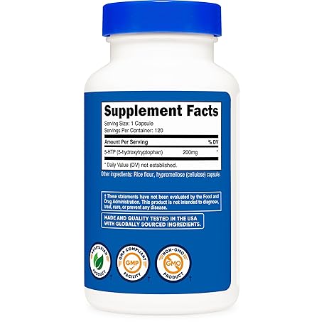 Sản phẩm Nutricost 5-HTP 200mg, 120 Vegetarian Capsules (5-Hydroxytryptophan) - Non-GMO & Gluten Free đang được bán với giá ưu đãi là $18.4646 tại nước Mỹ.
